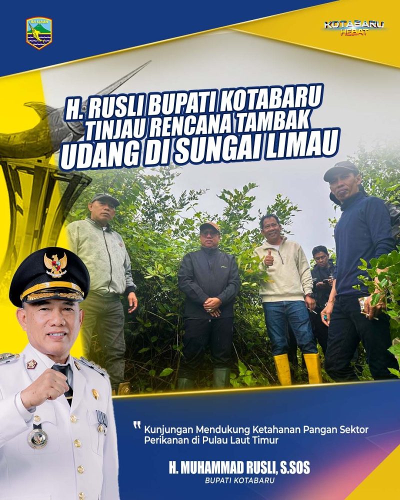 Hari ini tadi, Sabtu (05/07/25), Bupati Kotabaru, H Muhammad Rusli meninjau lokasi rencana pembangunan kawasan cluster percontohan budidaya udang intensif berbasis kawasan.